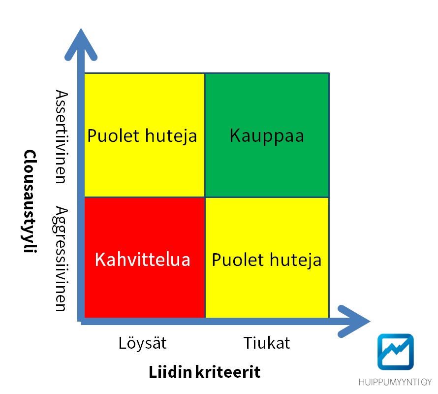 Kriteerien lisäksi buukkarin tyyli vaikuttaa tulokseen. Päällä käyvä buukkari saa kyllä sovittua tapaamisen, mutta myyjän lähettämään kalenterikutsuun ei ikinä vastata. Tai jos tapaaminen toteutuukin, buukkari on jo voinut saada prospektin takajaloilleen ärhäkkäällä tyylillään, jolloin myyjän mahdollisuudet clousata kauppa kotiin jäävät pieniksi.